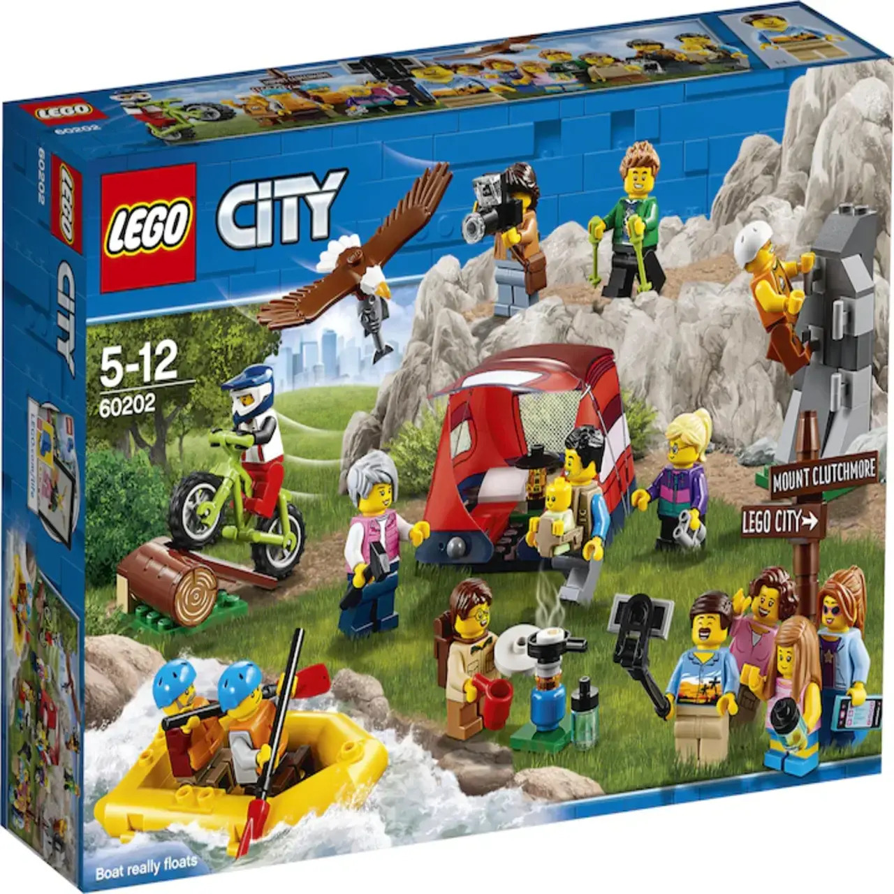 für spannende Aktivitäten. Es gibt unter anderem ein Schlauchboot, ein Zelt, eine Bergwand und einen Holzstapel mit Rampe. Das LEGO City Set enthält 14 Minifiguren sowie ein Baby und einen Adler als weitere Figuren. Enthält ein Mountainbike, ein Schlauchboot, ein Zelt zum Aufklappen, eine Bergwand und einen Wegweiser. Das Zubehör umfasst 2 Paddel, eine Kamera, eine Laterne, einen Rucksack, 3 Helme, 2 Schwimmwesten und einen Fisch. Stell dein Zelt auf, bevor du dich auf eine Wanderung begibst. Erklimme die Bergwand und geniesse die Aussicht vom Gipfel. Paddle hinaus, um eine spannende Schlauchbootfahrt durch die Stromschnellen zu erleben. Schwing dich auf das Mountainbike und benutze die Rampe am Holzstapel, um einige Sprünge zu zeigen. Das Zelt ist 5 cm hoch, 6 cm breit und 6 cm tief. Die Bergwand ist 7 cm hoch, 3 cm breit und 3 cm tief. Das Schlauchboot ist 9 cm lang und 5 cm breit.
