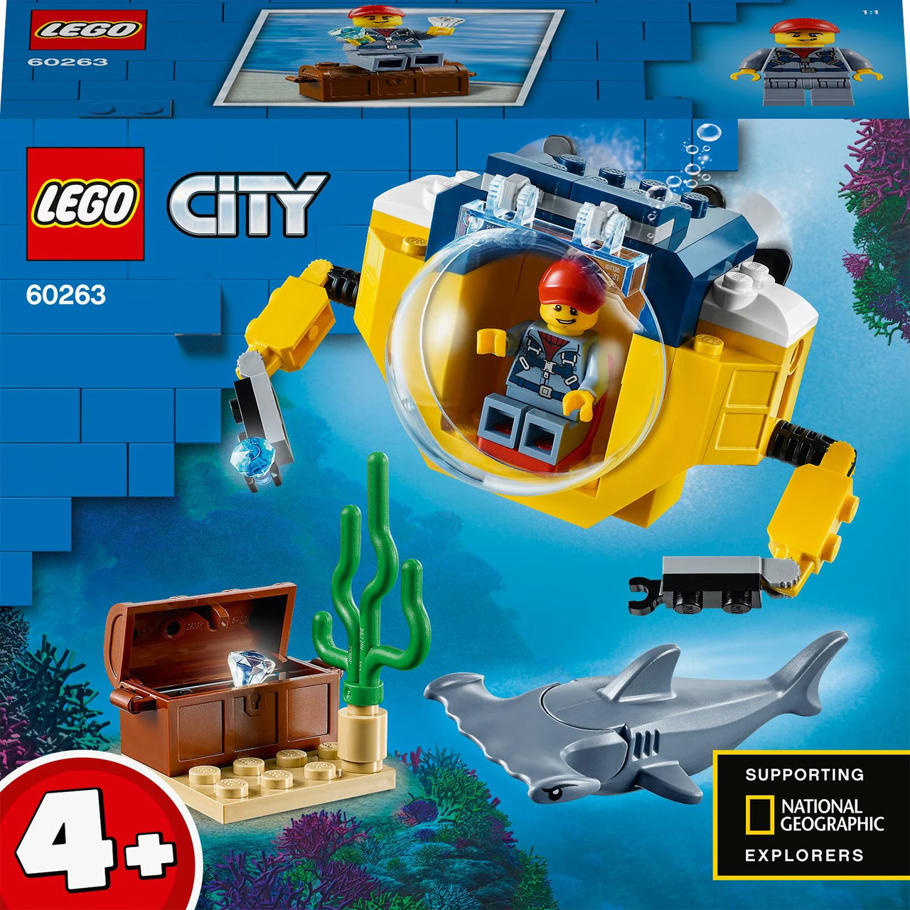 Coole Spielzeuge, die Kinder kreativ werden lassen. LEGO City ist stolz darauf, die Arbeit der National Geographic Explorers zu unterstützen. Unsere Ozean-Spielsets bringen Kindern die faszinierende Welt der Meeresforschung näher, in der sie typische Szenarien mit realistischen Ozeanfahrzeugen, authentischen Kulissen und lustigen Figuren als spannende Rollenspiele nachstellen.