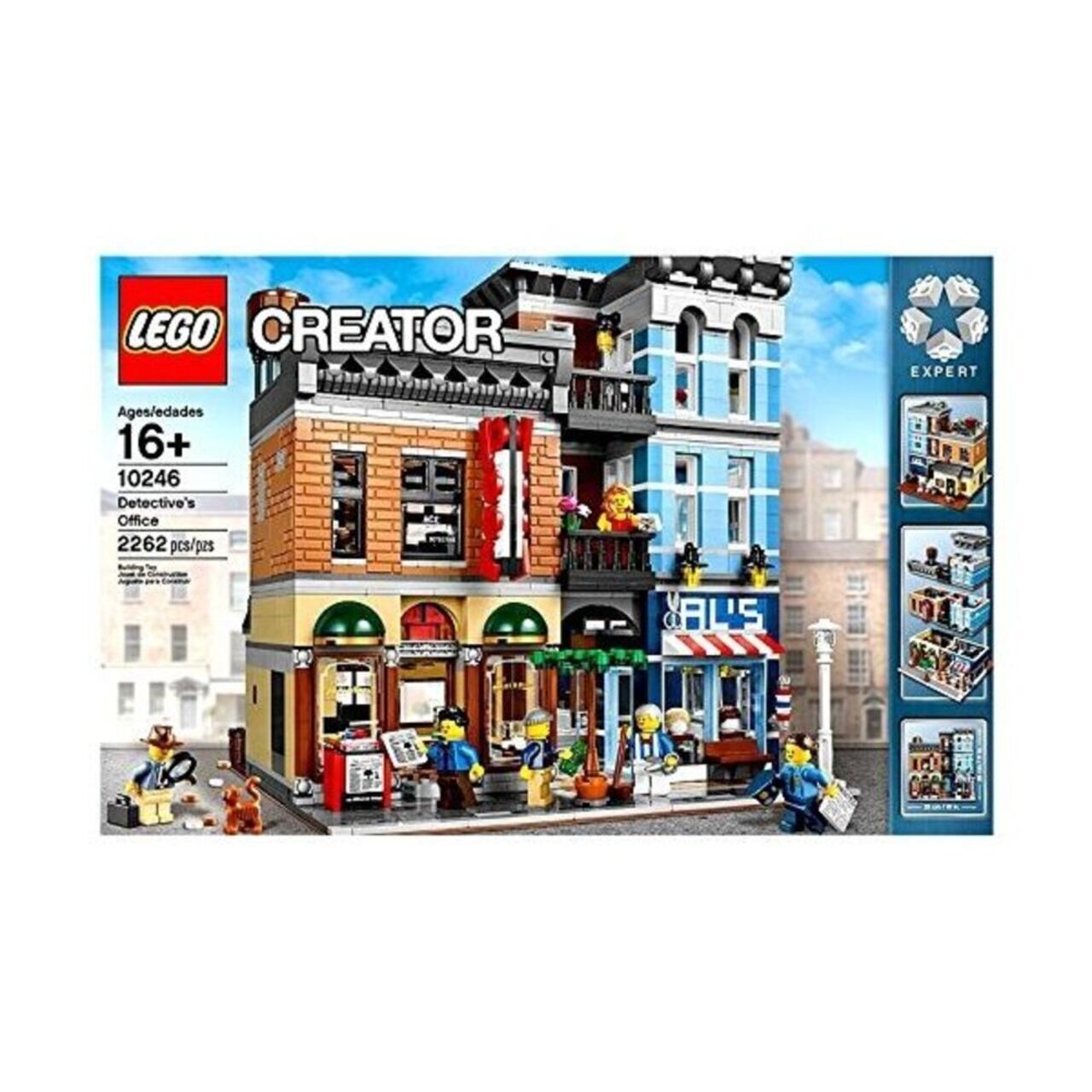 Entdecke mit dem LEGO® Creator Expert Detektivbüro eine rätselhafte und abenteuerliche Welt! Geh durch den offenen Torbogen in den Frisörladen, wo die Kunden auf ihren Stühlen vor dem großen Wandspiegel frisiert werden, während nebenan unter dem angenehmen Lufthauch des Deckenventilators Poolbillard und Darts gespielt wird. Begib dich in den ersten Stock, wo sich das Detektivbüro befindet. Der Schreibtisch ist mit Hinweisen übersät, ein Tresor enthält wichtige Beweise und in der Wand verbirgt sich ein Geheimfach. Geh dann in die angrenzende Toilette mit klassischer Kettenspülung, bevor du die Treppe zur gut ausgestatteten Küche hinaufsteigst, von der du auf die Dachterrasse gelangst, auf der sich ein großer Wasserturm befindet. Dieses allerneueste Set aus der LEGO Serie „Modulares Bauen“ enthält eine Fülle beispielloser Details und versteckter Überraschungen. Das Dach und die Decken lassen sich leicht abnehmen, um Zugang zum tollen Innenleben zu bieten. Von außen betrachtet fasziniertdas Gebäude mit seiner schmuckvollen Dachlinie und der wunderschön gestalteten Fassade. Kannst du das Schmugglerrätsel lösen? Enthält 6 Minifiguren mit passender Ausrüstung: Privatdetektiv Ace Brickman, Frisör Al, Dart-Spieler, Poolbillardspieler, Polizistin und geheimnisvolle Frau in Rot.