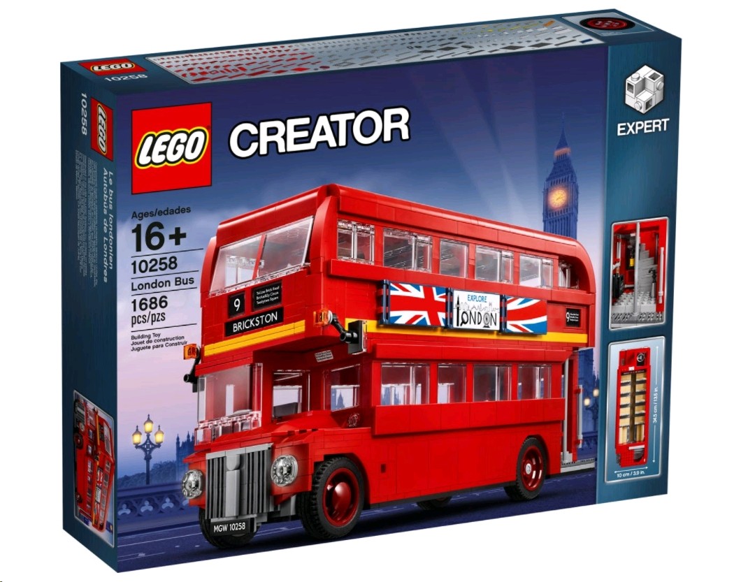 Dieser charmante Londoner Bus ist eine Hommage an legendäres Design. Der Doppeldeckerbus strotzt nur so vor authentischen Details wie der leuchtend roten Lackierung, der Panorama-Windschutzscheibe, den speziell angefertigten Profilreifen, dem Schild mit dem Fahrziel und dem offenen Heckeinstieg samt Haltestange, Papierkorb für entwertete Fahrkarten, Feuerlöscher und Halbwendeltreppe zum oberen Aussichtsdeck. Zu den Funktionen gehören eine aufklappbare Motorhaube mit Motor und eine detailreiche Fahrerkabine mit Schiebetür. Dach und Oberdeck lassen sich abnehmen, um Zugang zum detailgetreuen Unterdeck zu bieten. Dort gib es „abgenutzte“ Sitze und weitere authentische Details wie zurückgelassene Gegenstände – ein vergessener Regenschirm, eine Zeitung, eine leere Getränkedose und ein „entsorgter“ Kaugummi. Doppelseitige Werbeposter im Stil der 1950er-Jahre bzw. mit Werbung für das heutige London sind als bedruckte Etiketten enthalten. Dieses LEGO® Creator Expert Modell wurde entwickelt, um ein anspruchsvolles und lohnendes Bauerlebnis zu bieten – und einen Hauch von Nostalgie und Charme zu verbreiten.