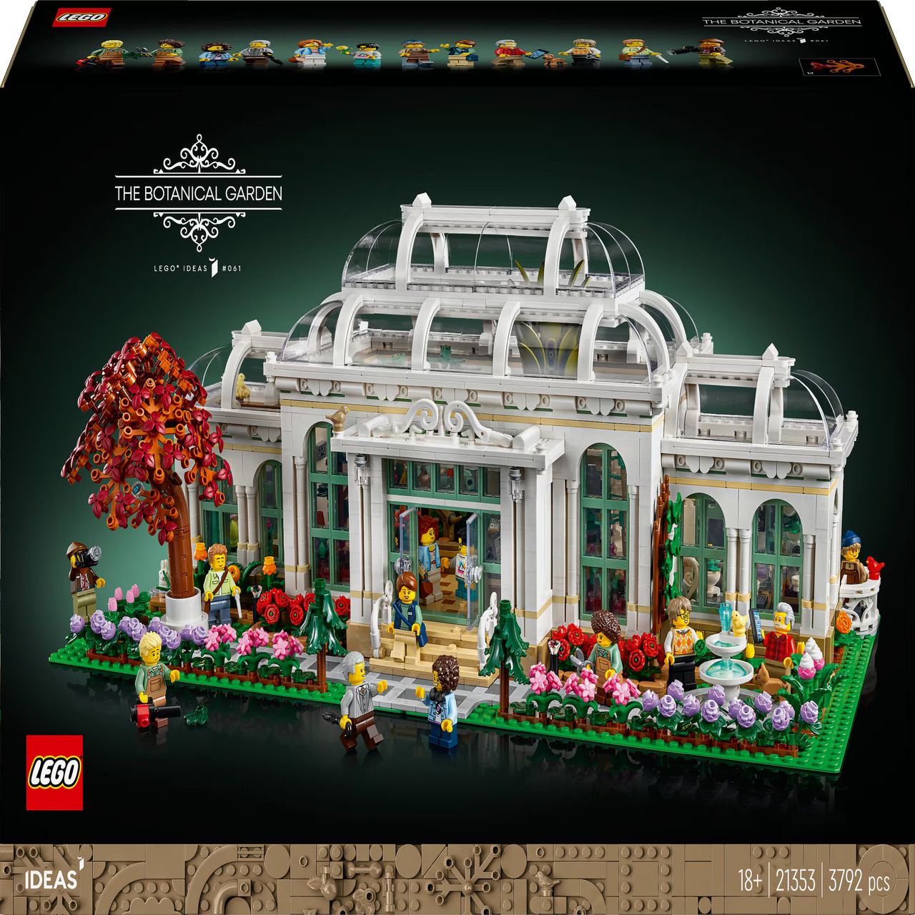 LEGO® Ideas Der Botanische Garten (21353) lässt dich eine beruhigende Wohn-Deko erschaffen und eine Verbindung zur Natur herstellen. Das entzückende Bauset ist ein tolles Geschenk für Männer, Frauen und Blumenfreunde. Das baubare Gewächshaus im Viktorianischen Stil besteht aus 3 Atrien und hat abnehmbare Dächer und Außenwände, um besseren Zugang zum detailreichen Innenleben zu erhalten. Im Hauptatrium befindet sich eine Wendeltreppe zur Aussichtsplattform. In den beiden kleineren Atrien sind ein Trockengarten und ein Café untergebracht. In den Außenanlagen befinden sich Gärten mit farbenfrohen Pfingstrosen. Insgesamt kann man in diesem botanischen Garten mehr als 35 Pflanzenarten bestaunen.