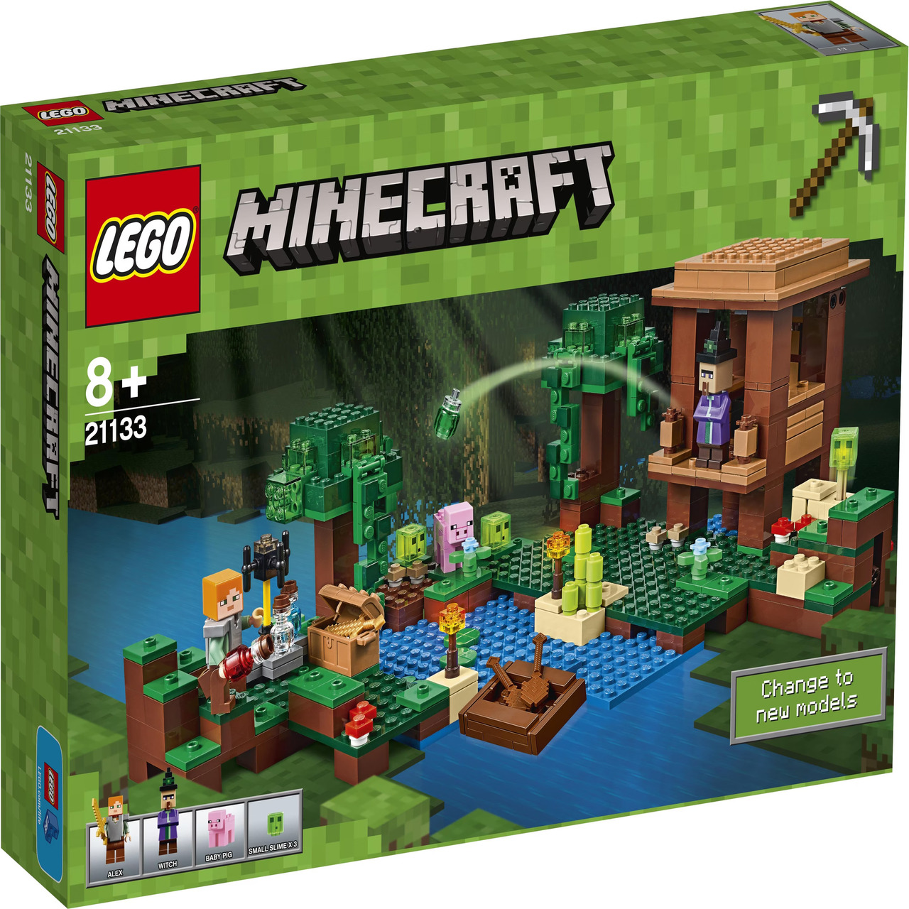 Steuere dein Boot durch den Minecraft™ Sumpf zum Hexenhaus. Braue Zaubertränke, aktiviere die Funktion des springenden Schleims und besiege die gefährliche Hexe! Begib dich in diesem modular aufgebauten und einfach umzugestaltenden LEGO® Minecraft™ Set auf interaktive Minecraft-Abenteuer mit deinen Lieblingsfiguren und -objekten. Dieses Set wurde speziell für junge Fans des äußerst erfolgreichen Sandbox-Videospiels konzipiert. Enthält Alex als Minifigur sowie ein Schwein und drei Schleime.