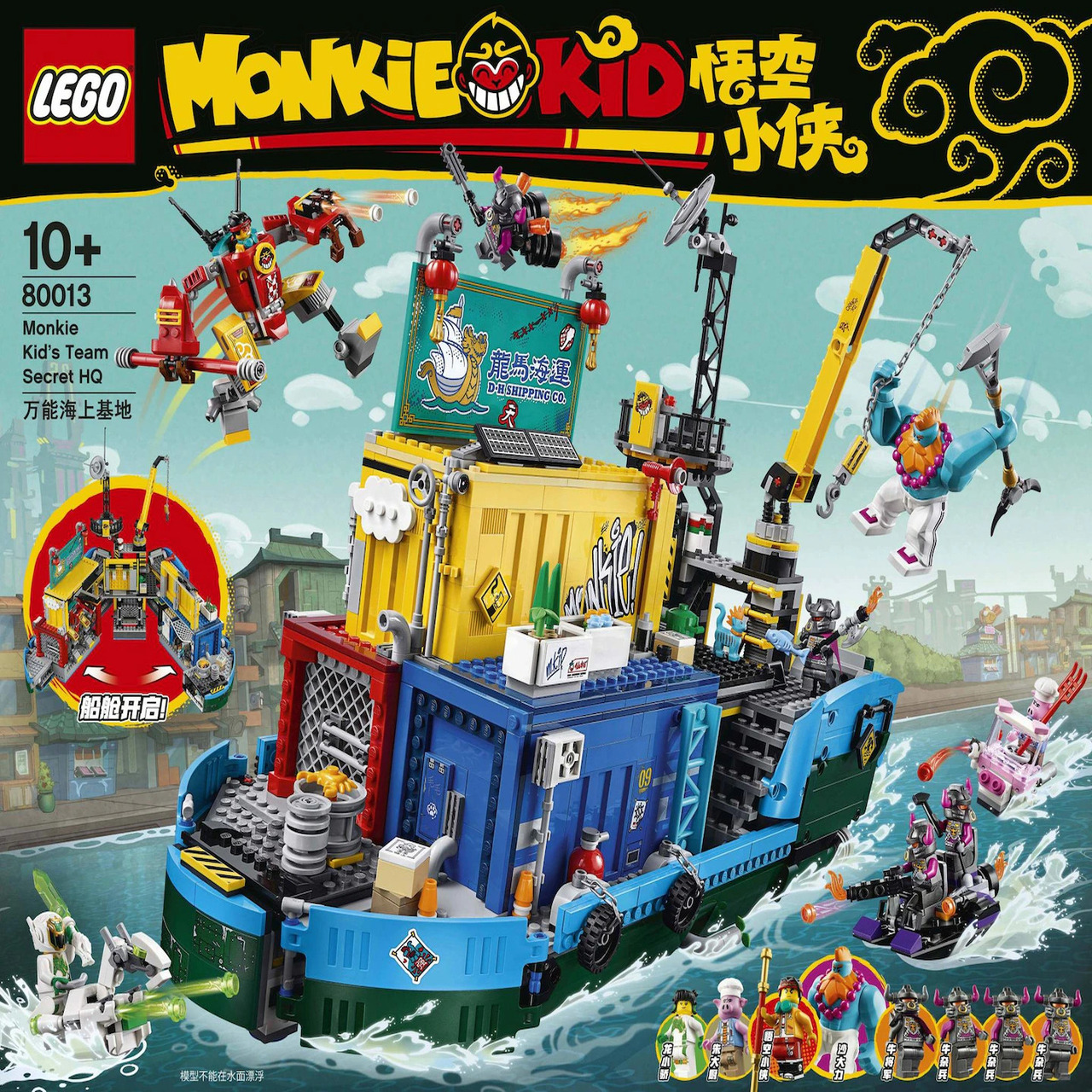• Im LEGO® Set „Monkie Kids geheime Teambasis“ (80013) verbergen sich unzählige Überraschungen und ein Schiffsmodell, das sich aufklappen und in drei Module teilen lässt, um leichten Zugang zur Werkstatt, zum Wohnbereich und einem beweglichen Mech zu bieten.