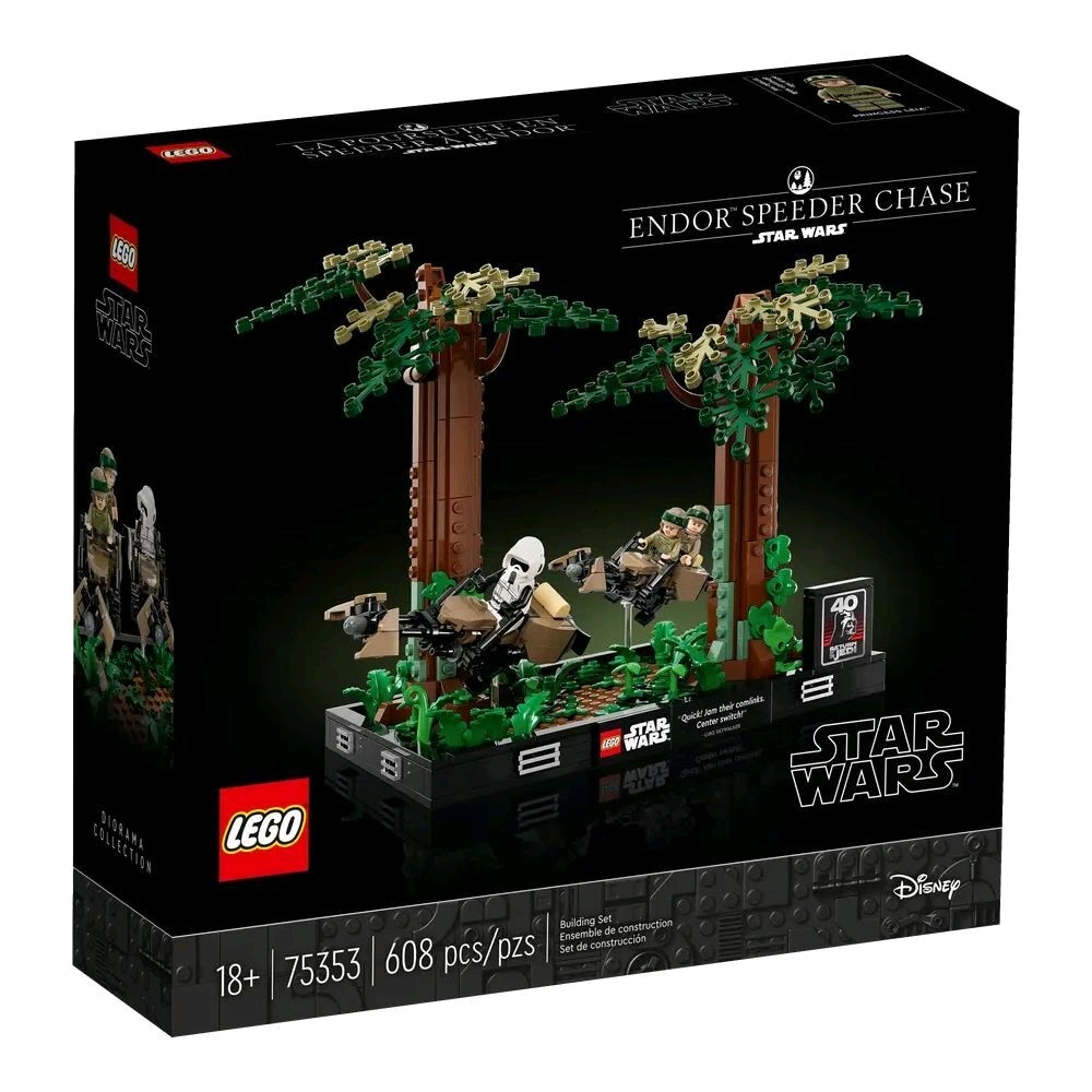 Verfolgungsjagd auf Endor™ – Diorama (75353): Bilde eine ebenso detailgetreue wie dynamische Szene aus LEGO® Steinen nach, die die legendäre Speeder-Verfolgungsjagd auf dem Waldmond von Endor aus Star Wars: Die Rückkehr der Jedi-Ritter darstellt