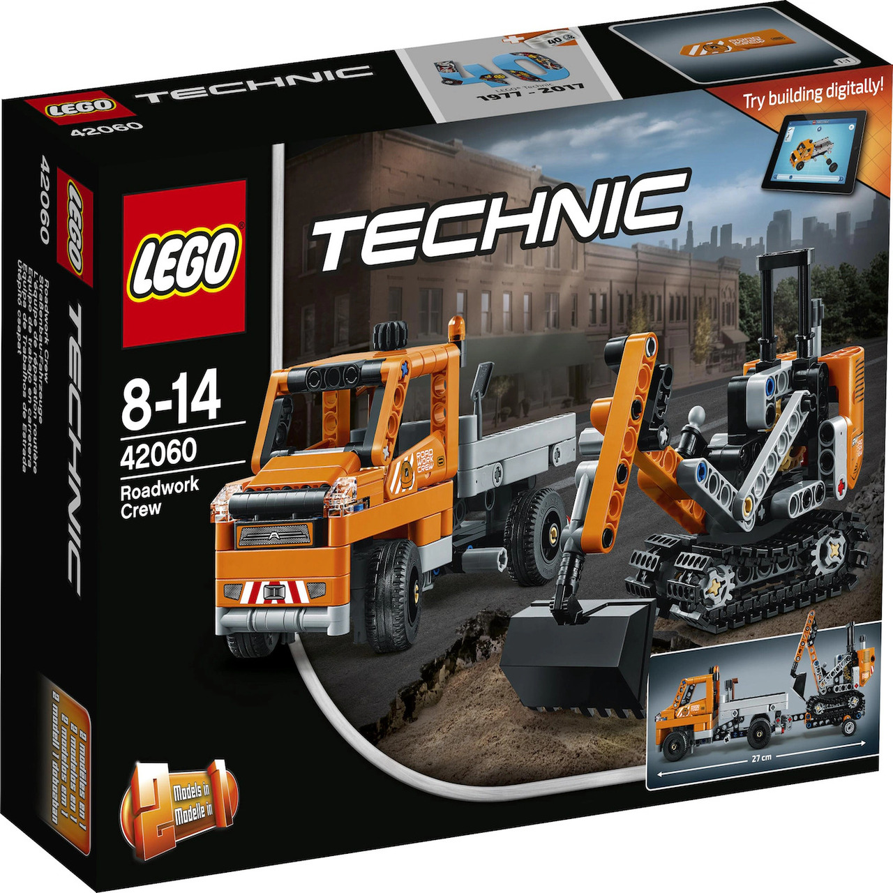 Mach dich mit den beiden Fahrzeugen aus diesem faszinierenden Set von LEGO Technic ans Werk. Die Strassenbau-Fahrzeuge bestehen aus einem Kipplaster mit funktionierender Lenkung, schrägstellbarer Kippmulde
